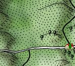 Am Westende des Straßenabschnittes - nur 2 Meilen östlich vom Simmerhof - kontrolliert ein Grenzposten die auf der Handelsstraße Reisenden. Jenseits des Postens führt die Alte Handelsstraße (am Simmerhof vorbei) nach Nordwesten in die Region Gluckenhang, Richtung Brosen und später Traviansfurt.