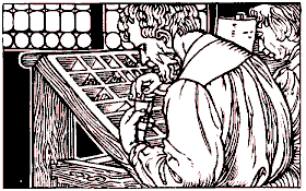 Der Mann klagte zurecht, denn die Arbeitsweise im Satz veränderte sich mit Gutenbergs Erfindung dramatisch. Wichtigste Instrumente wurden nun der Setzkasten, in dessen über 100 Fächer die Lettern einsortiert waren, und der Winkelhaken, auf dem der Setzer die Lettern zusammenfügte. Geblieben ist aber die Notwendigkeit eines Handwerkers, der mit Geschick und ästhetischem Empfinden die Elemente zusammenfügt. Im Folgenden eine kurze Schilderung des Satz-Ablaufs, der sich in über 500 Jahren kaum veränderte: